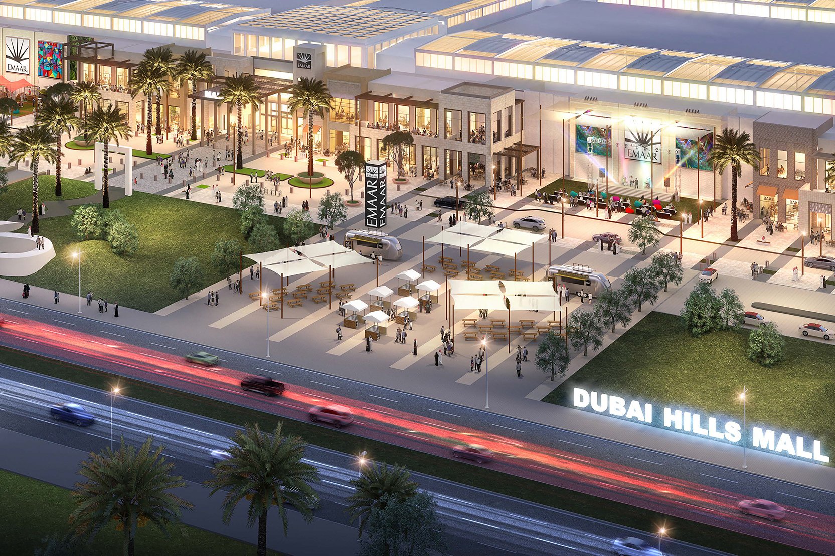 Vibrant and colorful markets nestled within the lush, green open spaces at the heart of the development.